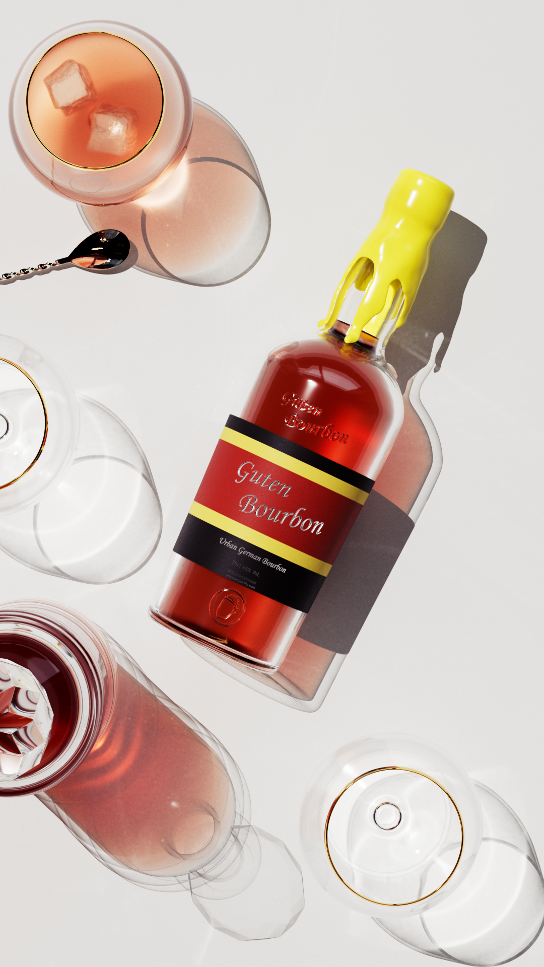 A personal project creating product photography for the fictional drink Guten Bourbon from the show Bojack Horseman.